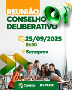 O Senaprev convida para a próxima reunião do Conselho Deliberativo, que acontecerá no dia 25 de setembro de 2025, às 8h30, na sede do Senaprev.