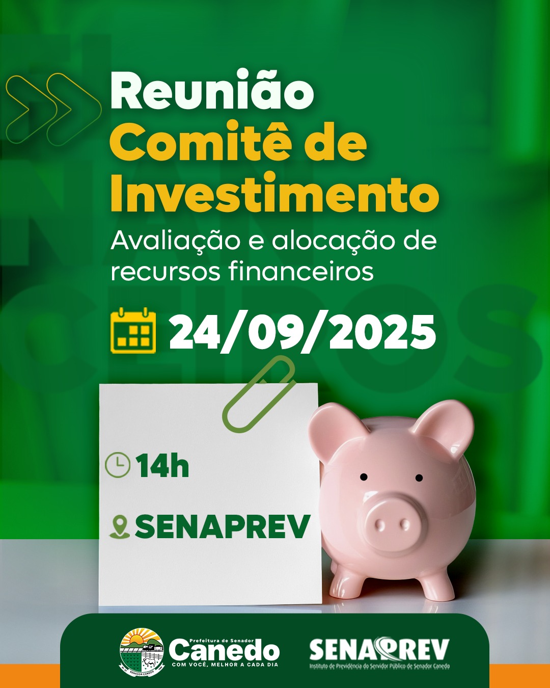 O SENAPREV convida para a reunião do Comitê de Investimento, onde serão discutidas a avaliação e a alocação de recursos financeiros.