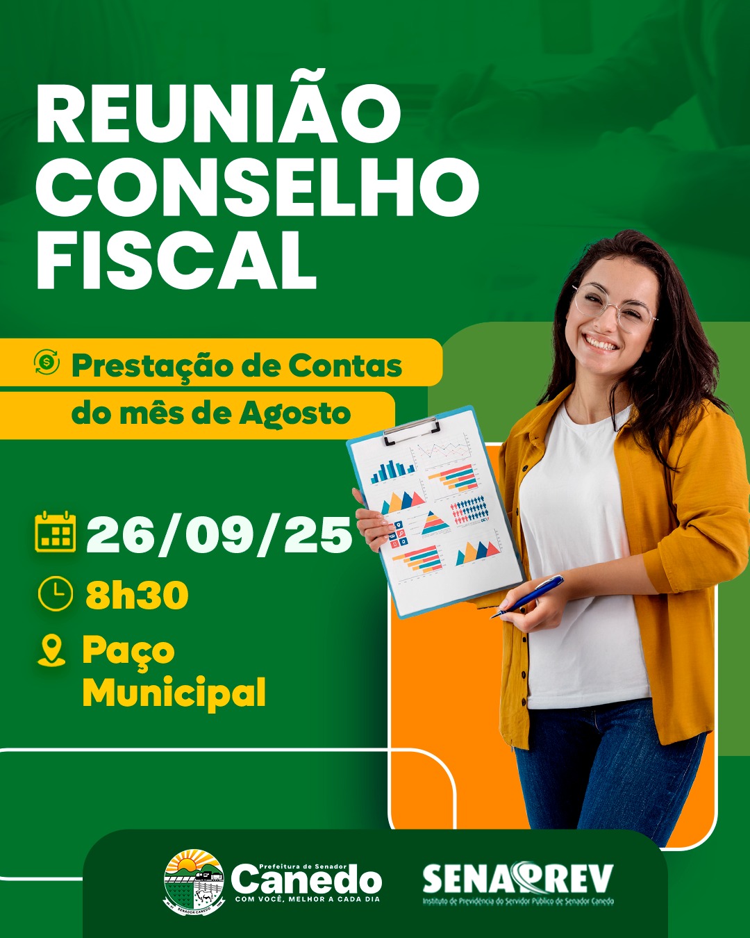 O SENAPREV realizará a reunião do Conselho Fiscal para apresentação da Prestação de Contas referente ao mês de Agosto.