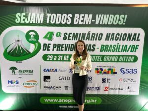 Entre os dias 29 e 31 de julho de 2025, a presidente do SENAPREV, acompanhada de membros da equipe técnica e do Conselho Deliberativo, participou do 4º Seminário Nacional da ANEPREM (Associação Nacional de Entidades de Previdência dos Estados e Municípios), realizado em Brasília.